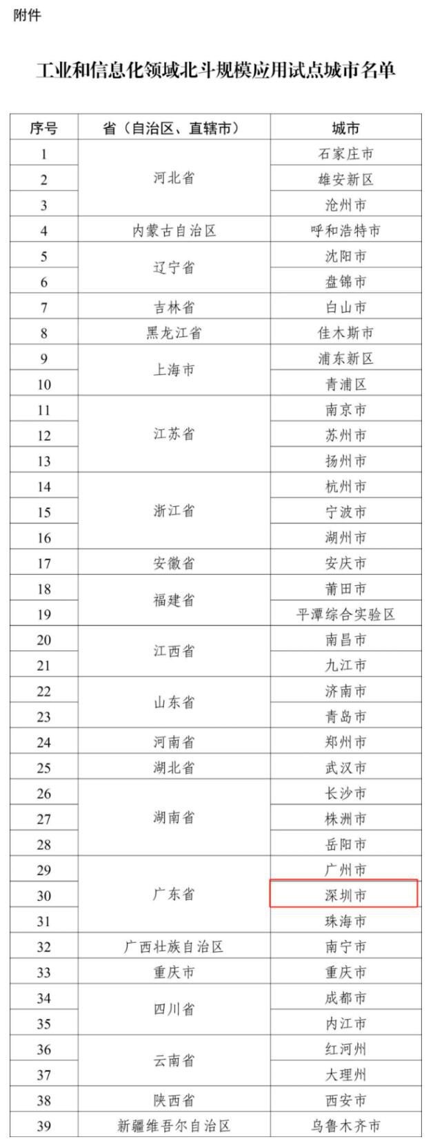 10月24日,工业和信息化部办公厅发布工业和信息化领域北斗规模应用试点城市名单,深圳成功入选。北斗规模应用试点将有利于深圳快速提升北斗产业发展水平能级,持续改善北斗应用生态环境,助力深圳北斗产业链供应链整体发展水平保持先进行列,成为全国重要的北斗创新成果转化地、产业发展集聚地和规模应用示范地,将深圳打造为全国一流的北斗时空信息产业集聚区、技术创新策源地和融合应用示范区。